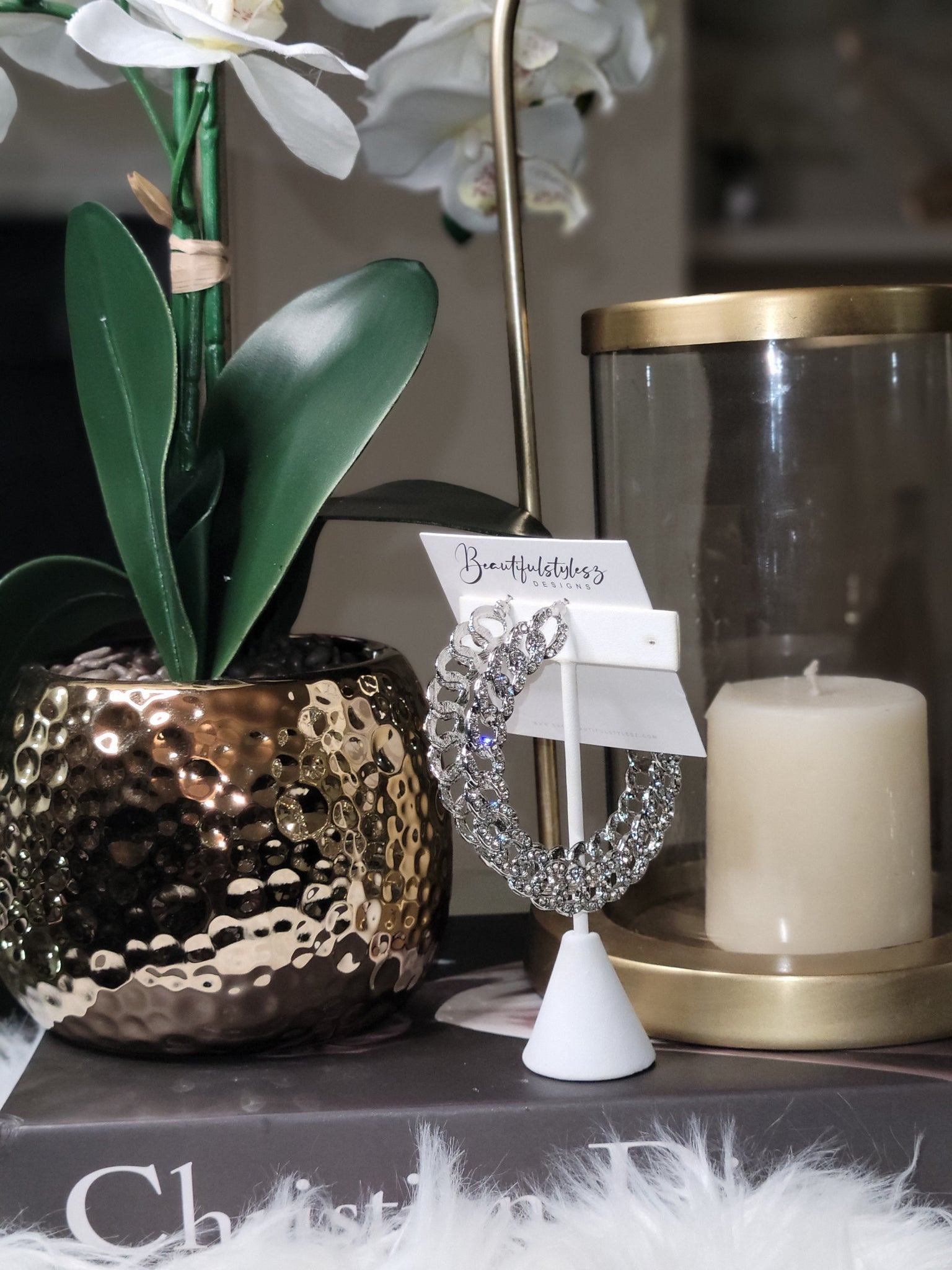 Large size diamond chain style Hoop earrings. Available in silver and gold.